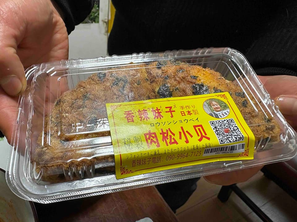 口直しにぴったりな中華スイーツも必食です。香辣妹子ではスイーツ好きな王さんの娘さんがスイーツを開発しているとのこと。私が中国に行くと必ず食べるスポンジケーキに肉でんぶをまぶした「肉松小貝(ロウソンシャオベイ)」も提供されておりテンションが上がりました。肉でんぶの甘しょっぱさとスポンジ部分のふわふわ感がたまりませんでした。