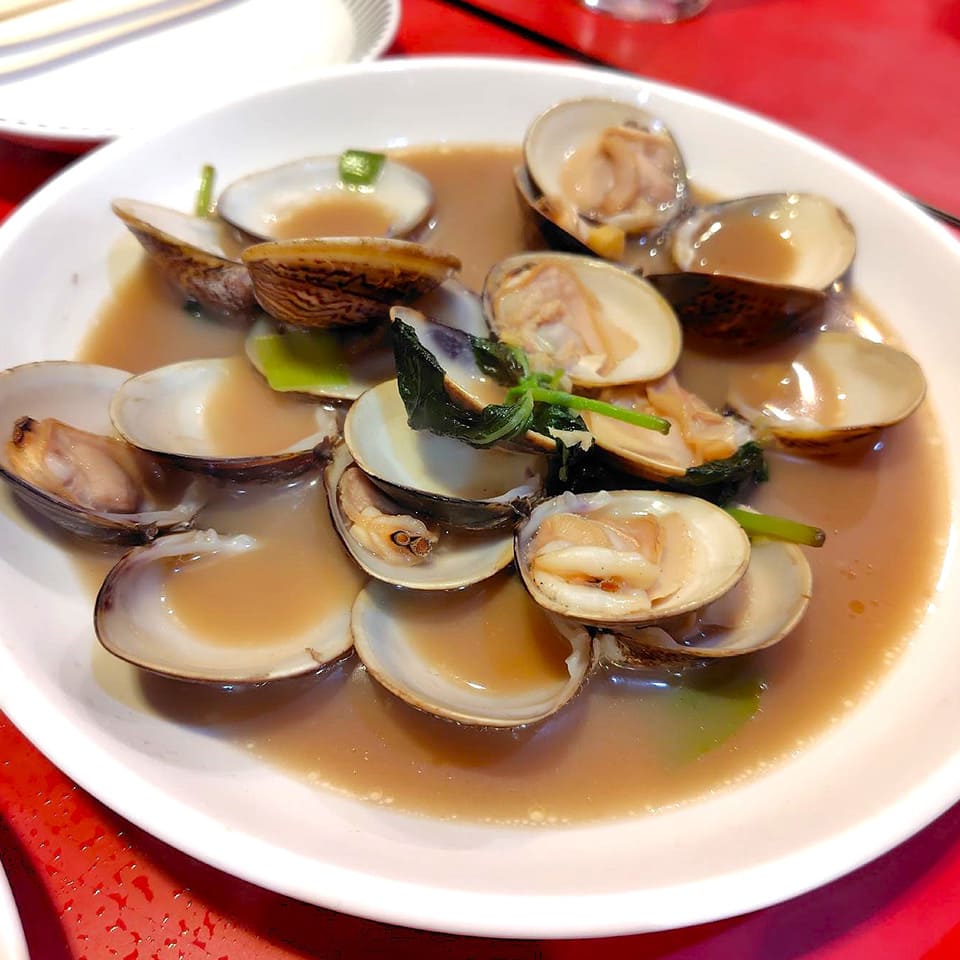 炒海瓜子(あさり炒め)と銀絲卷(台湾揚げパン)