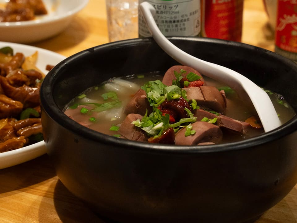 またホルモンとピーマン炒め、大根の豚マメ煮といった臓物のメニューも絶品でした。私は臓物料理が好きでよく食べていますが、今回の臓物系は臭みが全くなく「これは臓物なの!?」と驚かされました。ホルモンは肉厚で食感がぷにぷに、マメはレバーのような濃厚な味わいでした。