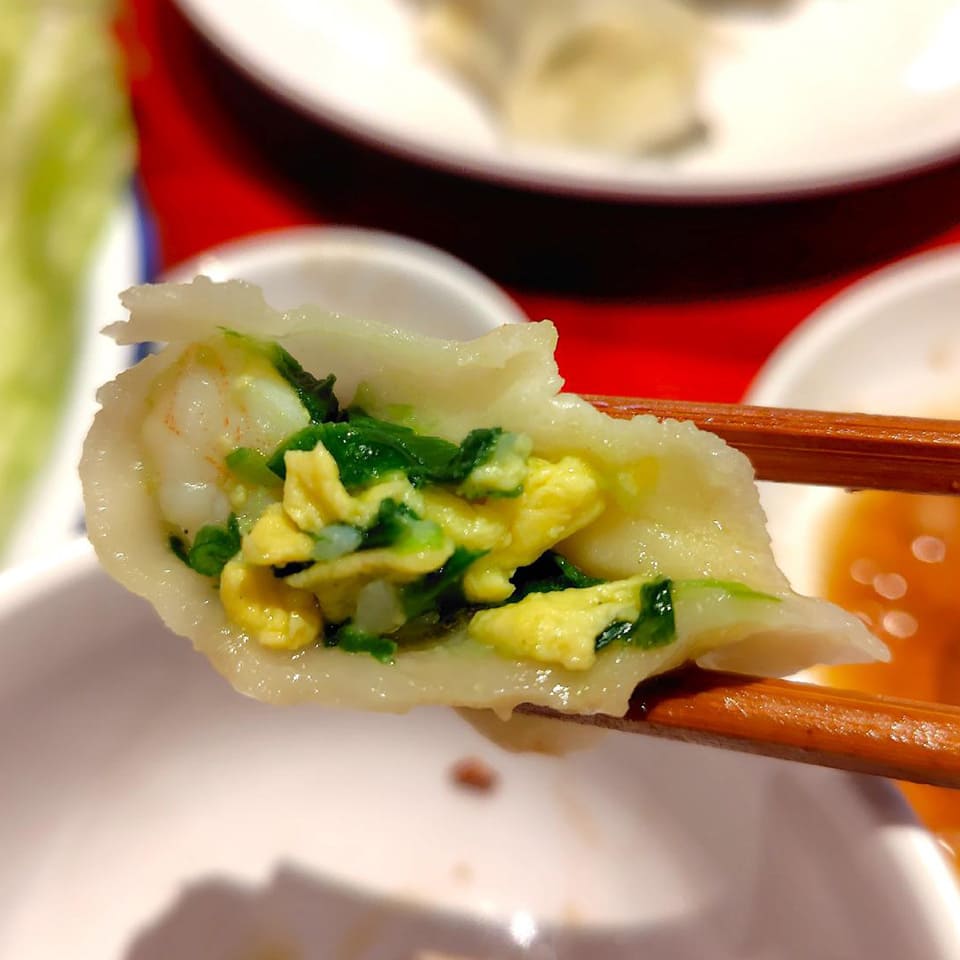 水餃子は梁さんの年夜飯の思い出の料理の一つだそう。形が「元宝(昔のお金)」に似ているので「財を招く」という意味があり、粉ものを食べる北方の年夜飯には欠かせないものです。しかも白菜は「百財(たくさんの財)」と音が近いので、これは更に財を招くことになります。